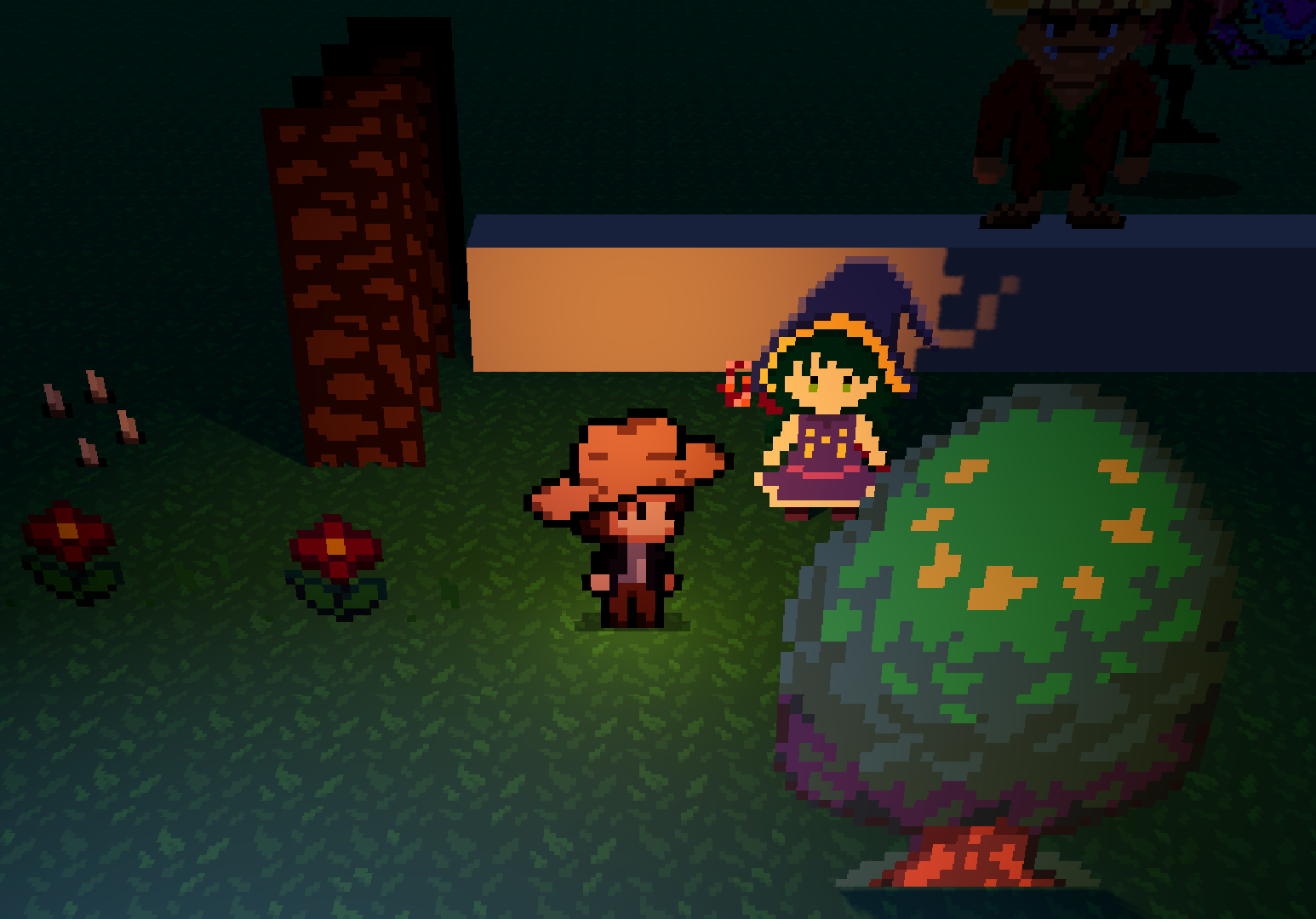 For billboarding, I tested with different projections and camera angles, trying to find the best compromise for visuals that kept the aesthetics I was envisioning. I also spent some time implementing a shadow system that made sense for 3D floating sprites; having to fight Godot for that was no fun.