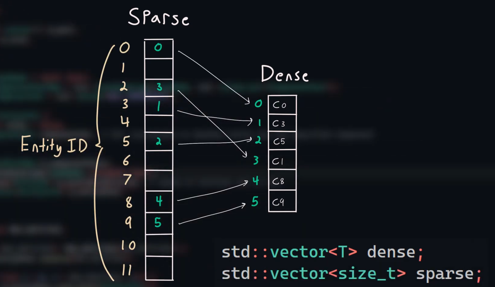 dense: [dynamic]Entity_ID, // ent = dense[dense_idx]