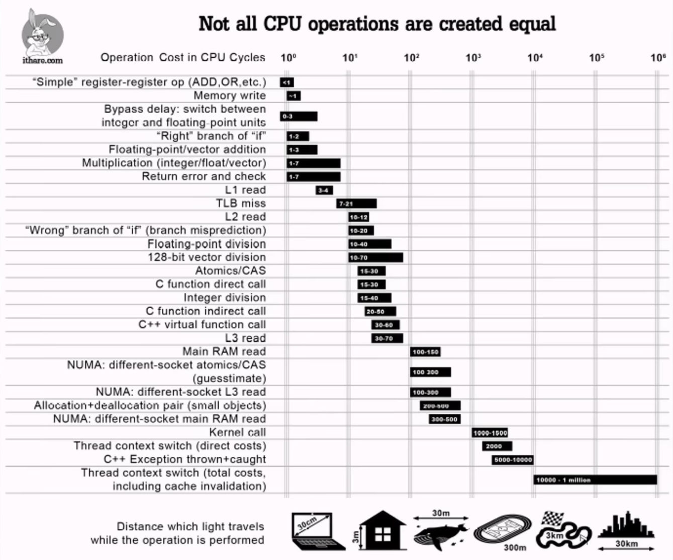 • Memory access has grown very slowly and became the bottleneck, so the CPU L1, L2 cache are super valuable.