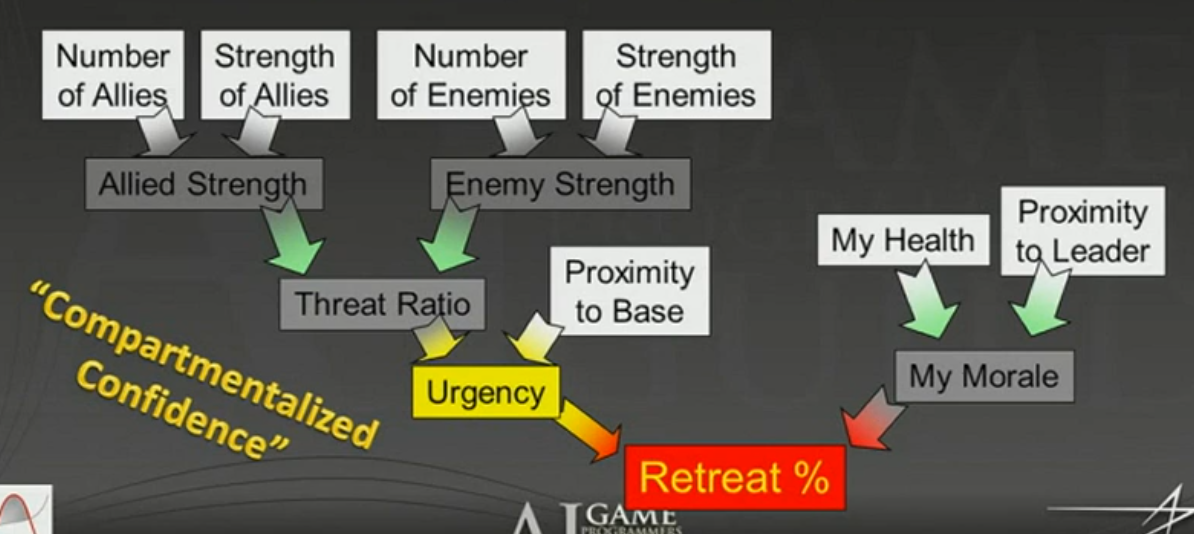 • Supposedly allows "emergent behavior", but that is quite obtuse; this kind of thing is not obvious due to implementation complexity. Very likely Utility AI can achieve more emergence more easily.