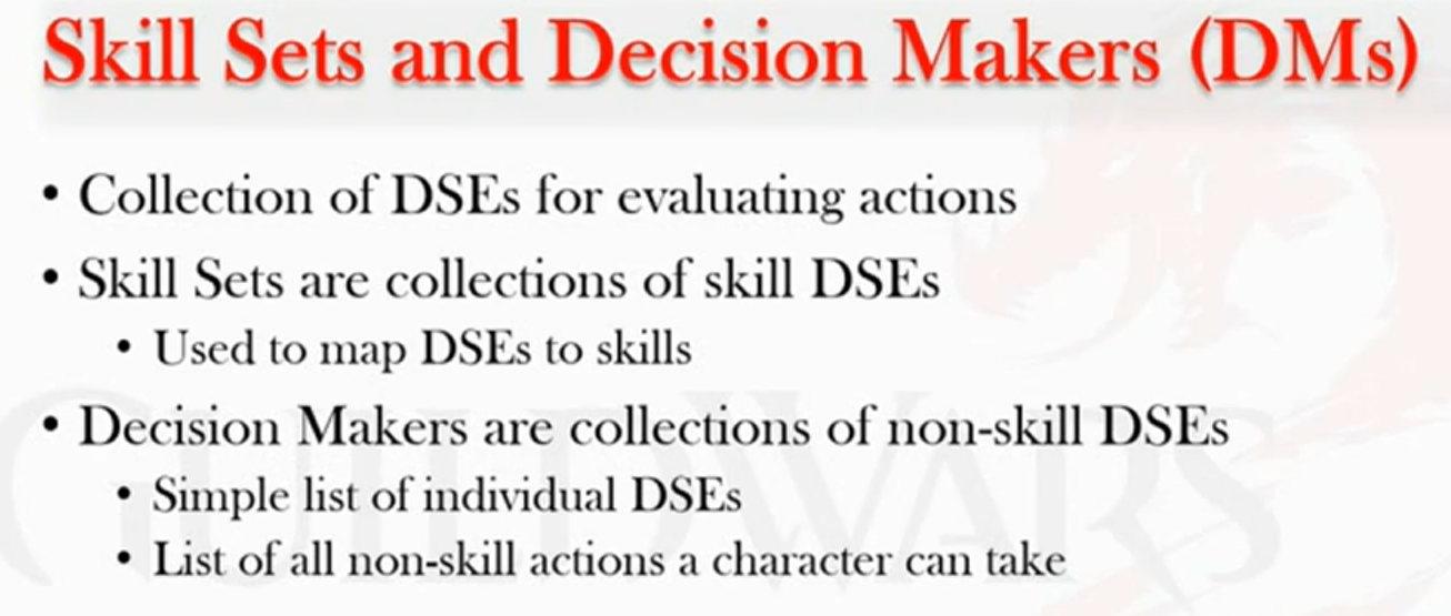 • All DSEs from Skill Sets and DSEs from Decision Makers are put in the same "bucket", that is, without making any distinction between "combat" and "out of combat".