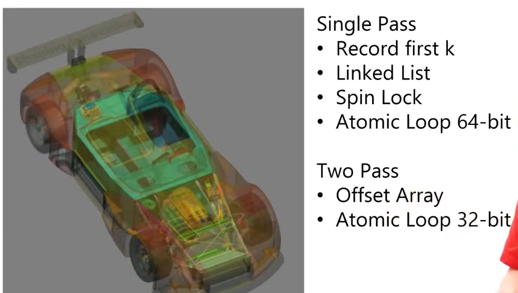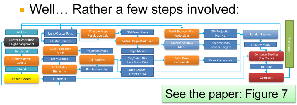 That paper describes an all-compute rendering pipeline for the traditional 3D triangle workload. The architecture calls for sorting in the middle of the pipeline, so that in the early stage of the pipeline, triangles can be processed in arbitrary order to maximally exploit parallelism, but the output render still correctly applies the triangles in order.