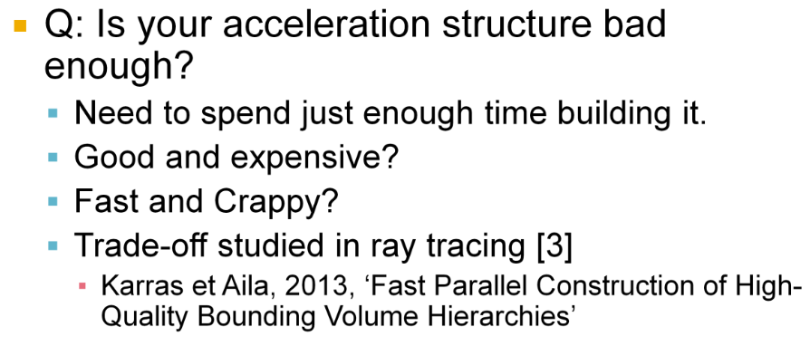 Our endeavor has multiple goals. First, we want to establish a firm data point of the performance of a state-of-the-art GPU software rasterizer compared to the hardware pipeline. We maintain that only a careful experiment will reveal the performance difference, as without an actual implementation there are too many unknown costs. Second, constructing a purely software-based graphics pipeline opens the opportunity to augment it with various extensions that are impossible or infeasible to fit in the hardware pipeline (without hardware modifications, that is). For example, programmable ROP calculations, trivial non-linear rasterization (e.g., [Gascuel et al. 2008]), fragment merging [Fatahalianet al. 2010], stochastic rasterization [Akenine-M¨oller et al. 2007] with decoupled sampling [Ragan-Kelley et al. 2011], etc., could be implemented as part of the programmable pipeline. Thirdly, by identifying the hot spots in our software pipeline, we hope to illuminate future hardware that would be better suited for fully programmable graphics. The complexity and versatility of the hardware graphics pipeline does not come without costs in design and testing. In an ideal situation, just a few hardware features targeted at accelerating software-based graphics would be enough to obtain decent performance, and the remaining gap would be closed by faster time-to-market and reduced design costs.