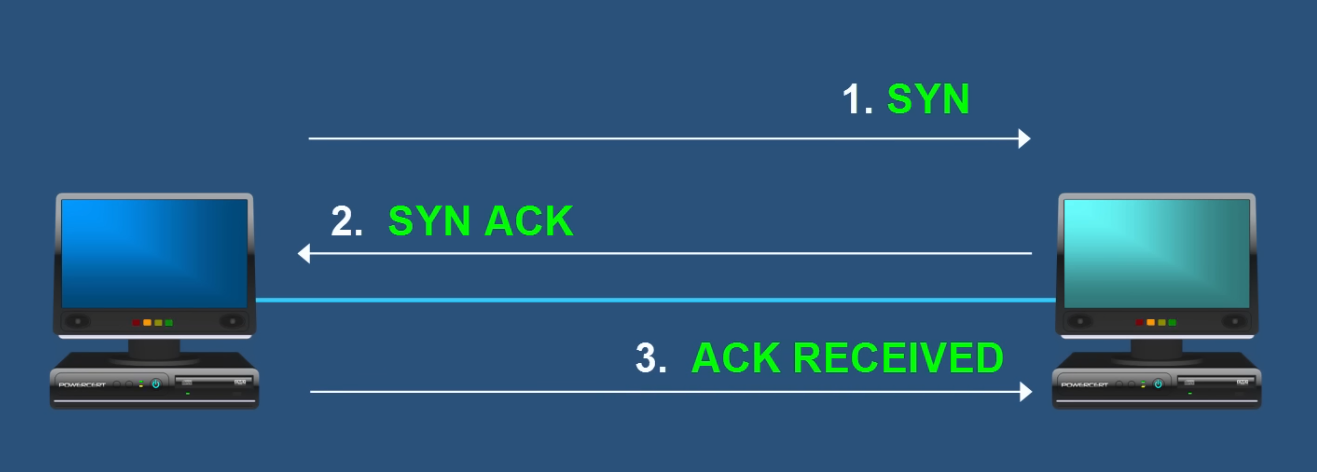 SYN -> SYN ACK -> ACK.