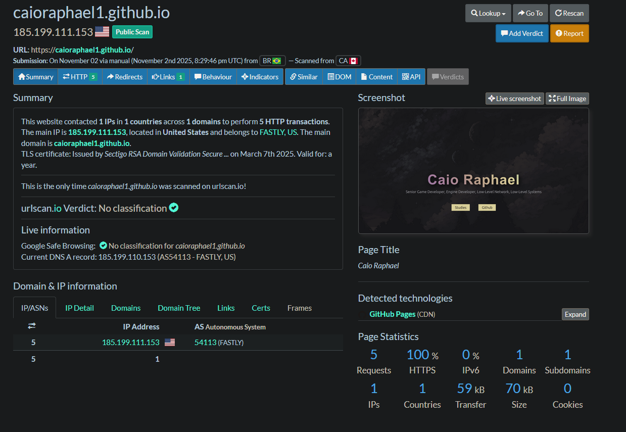 These tools let you probe the network behavior of a site safely at the protocol level, before any code or file is executed locally.