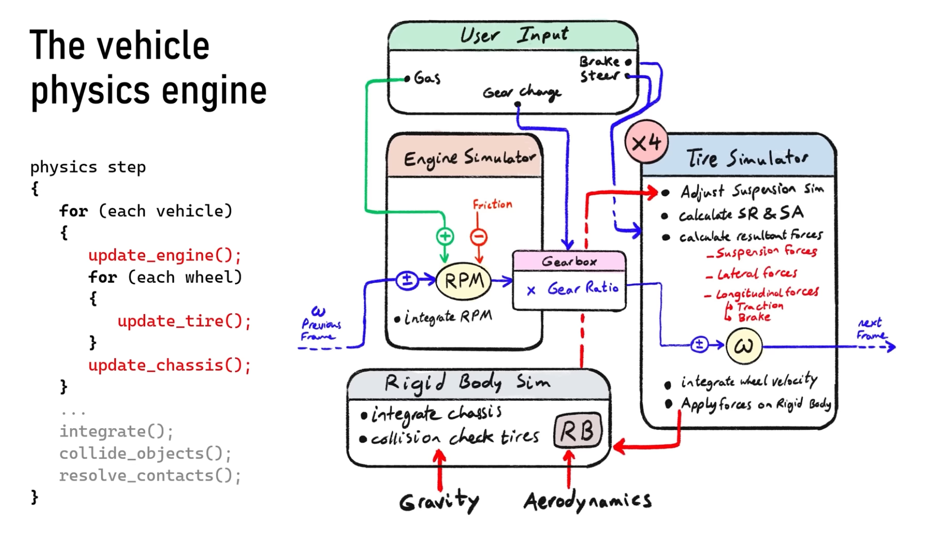 The video isn’t focused on programming or performance, but on the theory of realistic car simulation; it’s about cars only.